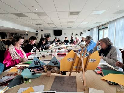 Daarna gingen de deelnemers zelf aan de slag met een creatieve activiteit, begeleid door een kunstenaar. Zo konden zij bloemen aquarellen, meeborduren aan een groot doek, collages maken of cyanotypie doen, afbeeldingen maken met behulp van zonlicht. Ook bij dit gedeelte ontstond veel plezier en verbinding. Deelnemers ontdekten een nieuwe activiteit of werden opnieuw enthousiast over iets wat ze jaren niet hadden gedaan.